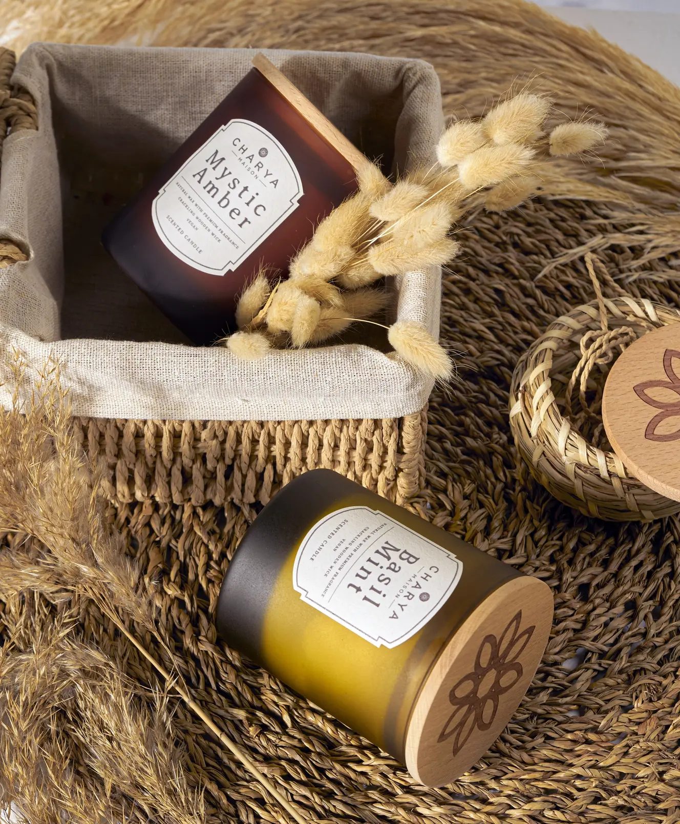 Tüm Charya Maison mumları %100 doğal soya, kanola ve Hindistan cevizi yağından, ahşap fitil ve eşsiz esansiyel yağlardan üretilmektedir. Parafin, palm yağı, kurşun, paraben, fitalat ve renklendirici içermez.